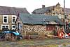 Photo by Ken Geddes ![]() Looking north in the Station Yard industrial estate, Earby in November 2014. Although the passenger station was demolished in 1976/77, the goods shed has survived. Its stone-built gable end with dentillation below the eaves is readily identified, but its eastern wall has been concealed