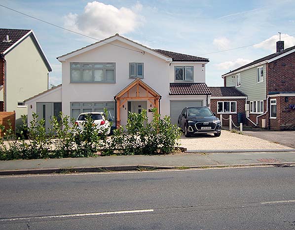 Photo by Mick Smith ![]() Looking south east from the site of Feering Hill level crossing at the site of Feering Halt in July 2024. No 88 Feering Hill and part of 86 stand on the site of the halt.