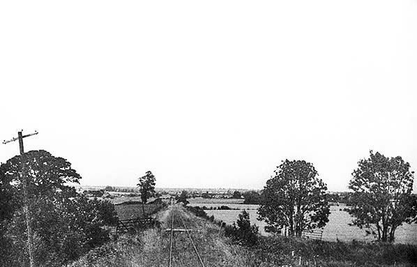 Photo by Brian Connell ![]() With the closed Feering Halt behind the camera, this is the view along the weedy track towards Tiptree from the diesel-hauled goods train towards the end of the line's life. The level crossing just ahead took a footpath over the line. The path meets the Inworth Road (B1023) at what is now Threshelfords Business Park, the former and once rail served Threshelfords Farm. The one-time Brooklands Siding, from which a spur led across the fields to the farm, was in the mid distance to the left. It was here during the Second World War that a train was attacked by a Luftwaffe aircraft, or rather the aircraft attempted an attack. There was no damage, injuries or fatalities and the train continued to trundle on its way.