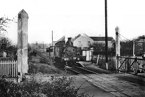 ![]() In the autumn of 1950 Class J67 No 68608 approaches Feering Halt with a mixed train for Kelvedon. The train is on a 1:50 rising gradient but will be on the level at Feering Halt. The gradient visible in the background was also 1:50 and indeed the line had several 1:50 gradients, being the result of keeping costs to a minimum during construction. Behind the train is a stretch of level track and the strip of land to its left was the site of Brooklands Siding, abandoned during the 1930s. The spur to Threshelfords Farm had run across the field seen here centre left. Photo from John Mann collection ![]() The LNER header on the right is deceiving, this photograph being taken after Nationalisation on 16 April 1949 as a Tollesbury - Kelvedon train waits at Feering Halt. The fireman has closed the gates to road traffic and it is likely the fireman was about to board the locomotive which is totally unidentifiable. The train is formed of Brake Third E62261 and one of the ex-Wisbech bogie cars. The scene absolutely shouts lack of maintenance during wartime, a situation which lingered well into postwar years as austerity measures continued. At some point during the 1950s the level crossing gates were given a repaint and the diamond-shaped warnings replaced by the more familiar red discs. To the left a permanent way hut sits beside the line which had a number of these, usually located at or close to stations. Photo by W A Camwell ![]() Feering Halt looking north west towards Kelvedon.