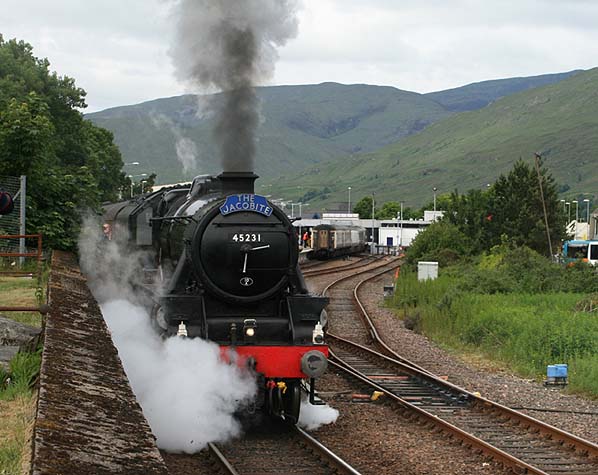![]() 'The Jacobite' departing for Mallaig in June 2008. The locomotive is LMS Class 5MT 4-6-0 no 45231