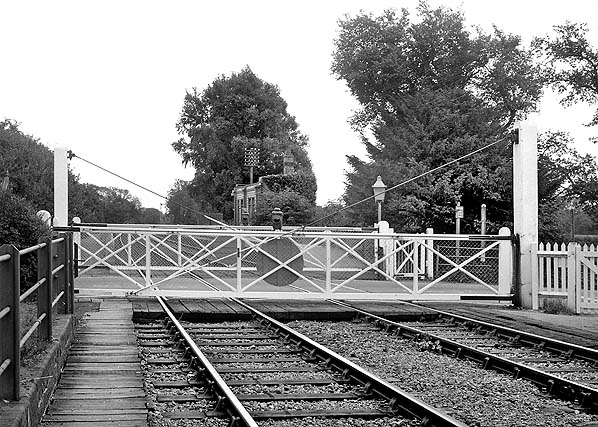 Looking east at the Station Road level crossing with Fulbourne station on the far side of the crossing c 1969. Part of the original station platform is seen on the left.