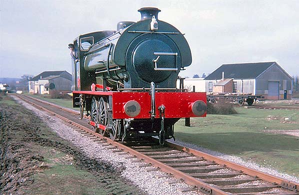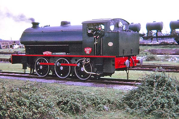Army No.92 ‘WAGGONER’ posing for the camera at Marchwood in February 1976. Note the track, at this point using concrete sleepers and with jointed track panels of relatively short length compared to those on the main lines.