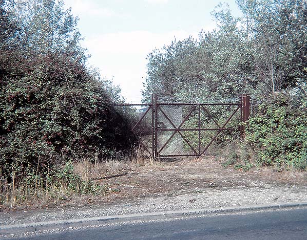 Site of the level crossing on Cracknore Hard Lane in September 1976. This was on the temporary spur laid for the construction of the original Marchwood power station in the 1950s. For a 'Then & Now' comparison, see the photograph of WD No.157 at the same location and showing the same set of gates. In April 2016 the gates still existed but behind additional security fencing and deep in undergrowth which now also engulfs the section of road in the foreground, as a realignment occurred sometime around the millenium to ease a bend at the approach to Cracknore Hard. The present road is a few yards behind the vantage point of this view. As mentioned elsewhere, this former level crossing is not to be confused with that believed to have existed on the Cracknore Hard branch, near