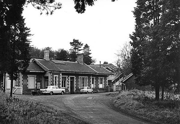 Photo from obsolete Grange Court Junction web site (2004 - 2012) ![]() The rather cleaner forecourt side of the station building photographed on 26 January 1964. There are gates either end leading directly to and from the Down main platform, the primary purpose of which would have been parcels, sundries and Royal Mail traffic. Should any personages from Northwood Green wish to use the station it was necessary to cross the railway by the the road bridge, walk a short distance south and then effectively double back along the station approach road seen here in the foreground. The approach road also provided access to the goods yard and stationmaster's house. Grange Court, which of course predated the railway, had and still does have an access road further south along Grange Court Road. Parked outside the station are what appears to be a Ford Zephyr Mark III and a Mini Mark I. The Ford has a trailer attached which seems too small to be of much use although of course it would depend upon what exactly its owner wished to transport; something which would be objectionable inside the car no doubt.
