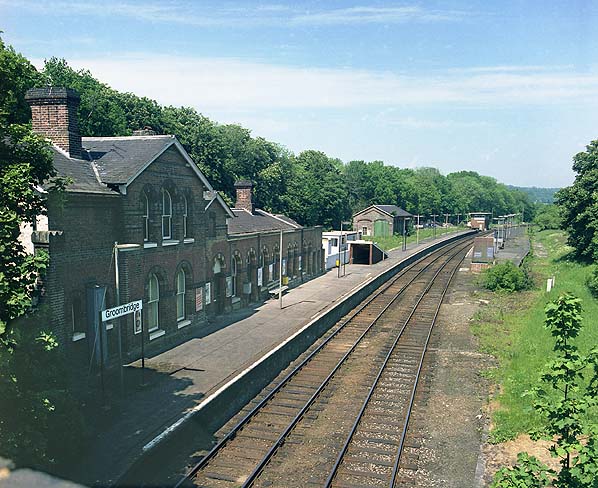 Groombridge Station looking north-east from Station Road in May 1985