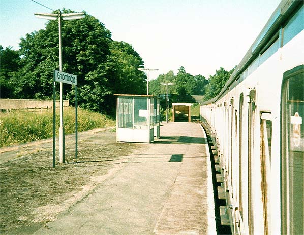 The Eridge shuttle waits at platform 2 at Groombridge station on 6 July 1985; the last day of passenger service. Photo by Martin Jones