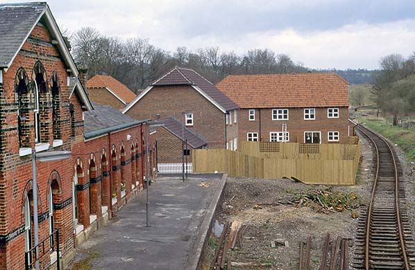 Groombridge station looking north-east from Station Road in April 1993. New housing stands on the site of the island platform and goods yard. Photo by Alan Young