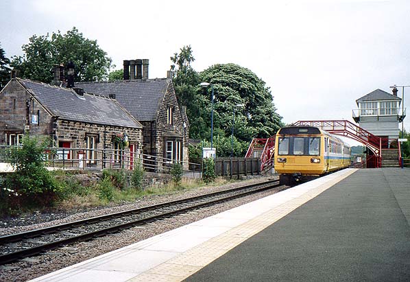 A Carlisle train arrives at Haltwhistle station (looking east) in August 2000