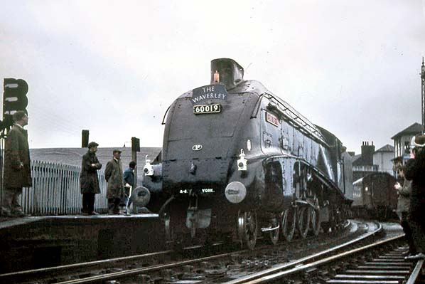 railtour at Hawick station on 12 April 1966. The railtour was hauled by A4 Pacific No. 60019