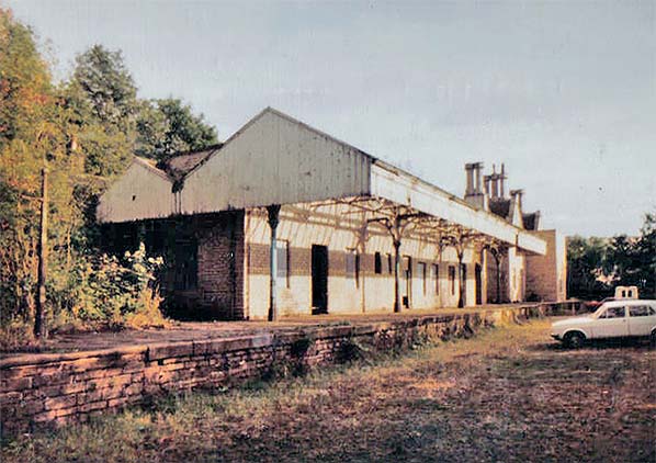 ![]() Looking south at Holmfirth station in 1981/83. The verandah and office range remain substantially intact. The station building is in residential use and has acquired a two-storey extension