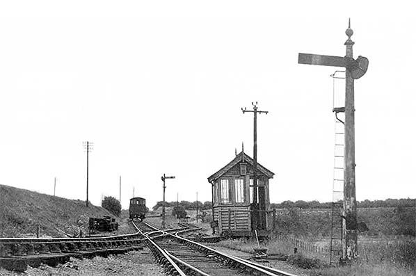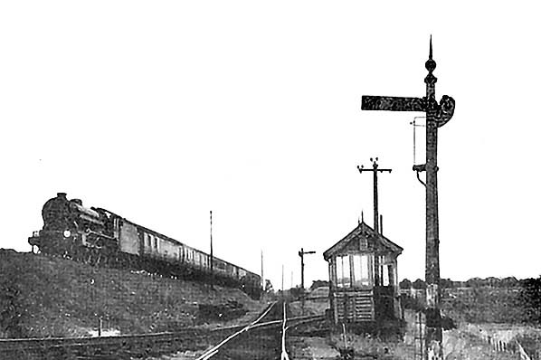 A Class B17 4-6-0 passes with an Up express passenger train on the main line. The tender is lettered 'BRITISH RAILWAYS' which tells us the photograph was taken shortly after Nationalisation which occurred in 1948. After the Kelvedon & Tollesbury was reduced to a goods line as far as Tudwick Road in 1951 all track at Kelvedon Low Level station was removed including the double slip seen here, the line then made plain track from the connection with the main line. With this alteration the Home signal, seen here directly ahead of the camera, was replaced by a then-still-modern upper quadrant signal on a metal post. The replacement signal then, of course, controlled the junction with the main line rather than entry into the former Low Level station.