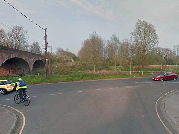 Photo by Fabiano Vianello ![]() Looking north east from the Kelvedon station approach road towards the site of Kelvedon Low Level station in February 2023. The station was located in the overgrown area between the railway embankment and the trees. The River Blackwater runs parallel with Station Road through the railway arch. There was a footbridge across the river but this was never the public access to the station. The only access to the station was from the north end of the up main line platform. The footbridge was still accessible in the 1970s but there is no trace of it now.