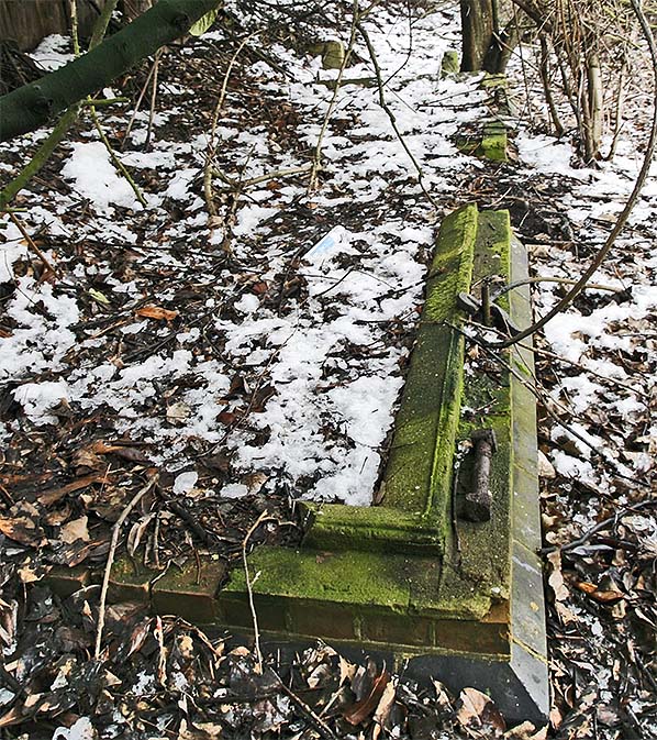 Photo by Mark Dufton ![]() Some remains of Kelvedon Low Level photographed in January 2015, before the site became difficult to access. The photograph is believed to show the footings for the former waiting room, although the style of the brickwork is difficult to match in photographs of the building when still in existence. However, to accommodate the waiting room part of the embankment carrying the main line was cut away and the result shored-up with vertically-mounted redundant sleepers. Close examination of the extreme upper left of the photograph appears to show these sleepers still in situ and this would confirm the original of the brickwork seen here.