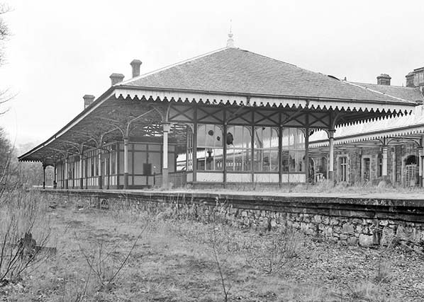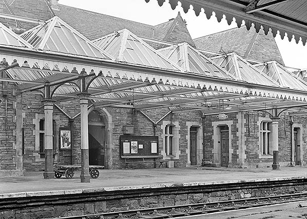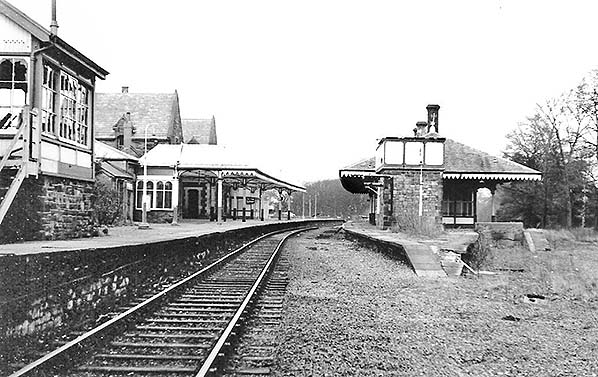 Photo from John Mann collection ![]() The main station building on the down platform is seen from the up platform c1970.