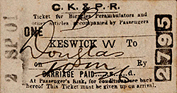 Photo from John Mann collection ![]() Looking east towards Keswick station c1970. The line was singled and the service cut back to Keswick in December 1967. The track appears recently lifted and ballast awaits removal. The old cattle dock is seen to the right of the station. A class 108 DMU stands in the platform.