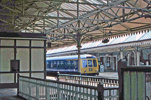 ![]() Looking west towards a Class 108 DMU at Keswick platform 1, the only platform to remain in use in summer 1971. Although the buildings remain in place the station is unstaffed. Within a year this scene will be just a memory as the line and station would close in March 1972.