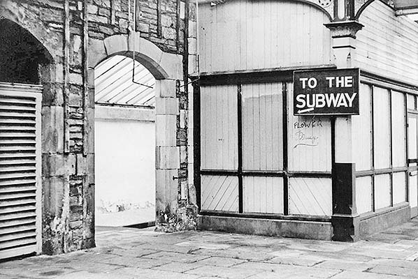 Photo from John Mann collection ![]() Only platform 1, formerly the down platform, remains in use in February 1972; nevertheless, passengers are invited to use the subway to reach the abandoned island platform.