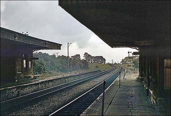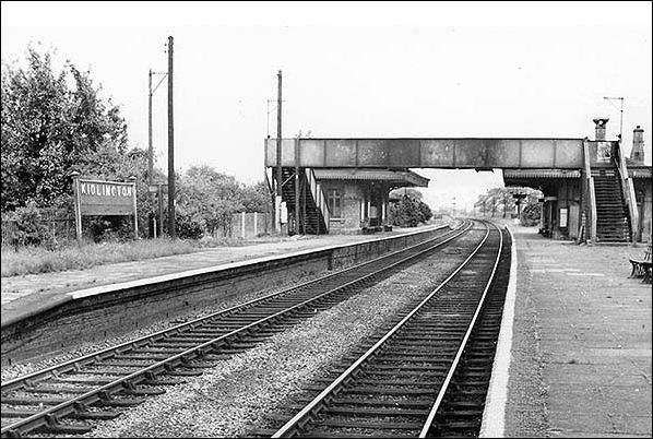 ![]() Kidlington station looking south from the Down platform after closure of the Woodstock branch in 1954. The running-in board on the Up platform has had 'Change for Blenheim & Woodstock’ removed.