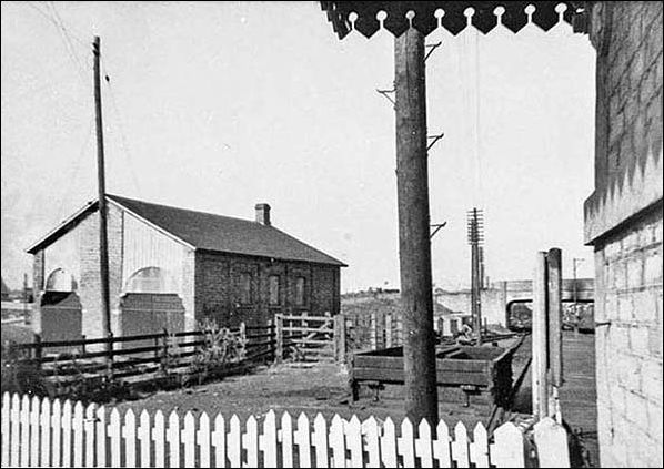 Photo from John Mann collection ![]() On the left the running-in board has had 'Change for Blenheim & Woodstock' removed and the track at the bay platform is becoming rather weedy, telling us this view dates from after closure of the Woodstock branch. The condition of the station by this time was quite appalling and former stationmaster William Cooke would have been horrified. On the station forecourt stands a British Railways lorry and behind the white fence is a motor car. Nearer the camera on the right is a Standard Vanguard apparently with a missing headlamp. Quite why the car is parked where it is can only be speculated upon and it is unlikely to have been abandoned in the middle of a railway goods yard. A few wagons can be seen on the right, perhaps for the bacon factory.