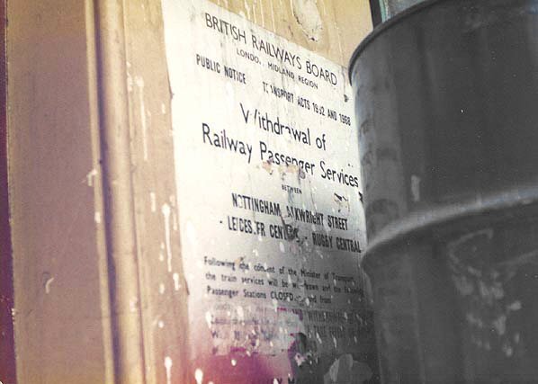 Remains of poster in the booking office at Leicester Central Station in Summer 1985