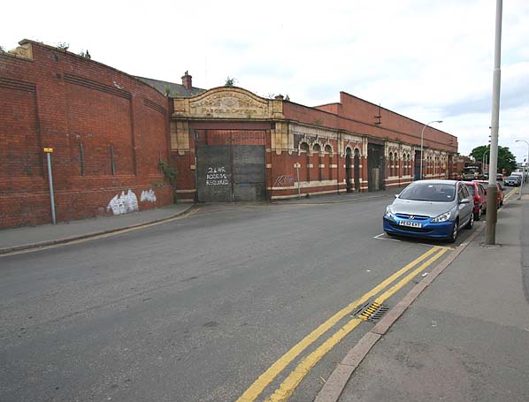 The entrance to Leicester Central Station in May 2008. The main entrance for passengers and cars is to the right of the parcels office entrance.