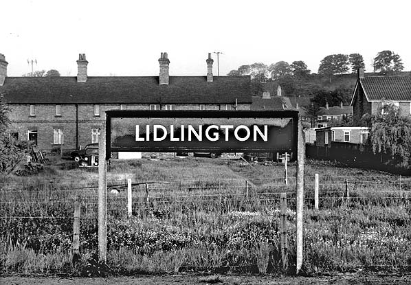 BR LMR running-in board on the up platform at Lidlington station in May 1970. The concrete supports were a common feature of LMR running-in boards