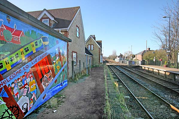 [Source: Nick Catford] ![]() Lidlington station mural in the former LMS toilet block in February 2014. With the help of a community artist and local young people, the Friends of Lidlington Station commissioned the mural which depicts village events and the railway. The work was funded by a grant from the Designated Community Rail Development Fund (a joint initiative of the Department of Transport, Network Rail and ACoRP). Photo by Nick Catford