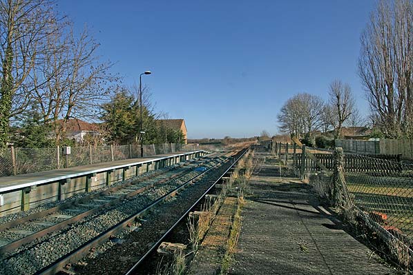 Lidlington station looking north-east from the former Bletchley platform in February 2014. Undergrowth clearance has been done by the Friends of Lidlington Station.