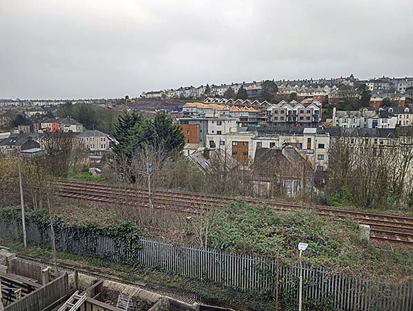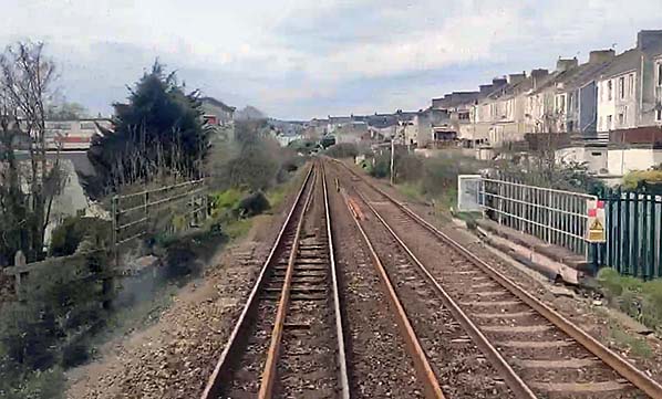 View from the cab of a Plymouth bound train shows the site of Lipson Vale Halt which was immediately beyond the bridge.
