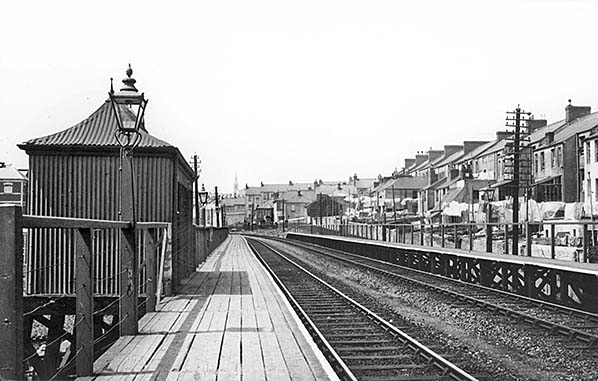 ![]() Lipson Vale Halt looking west along the down platform (towards Plymouth) in 1922. An archetypal GWR pagoda platform shelter with its distinctively-shaped corrugated iron structure was provided on the down platform. There was a similar pagoda shelter on the up platform. It was slightly offset from the down shelter so out of view in this photo.