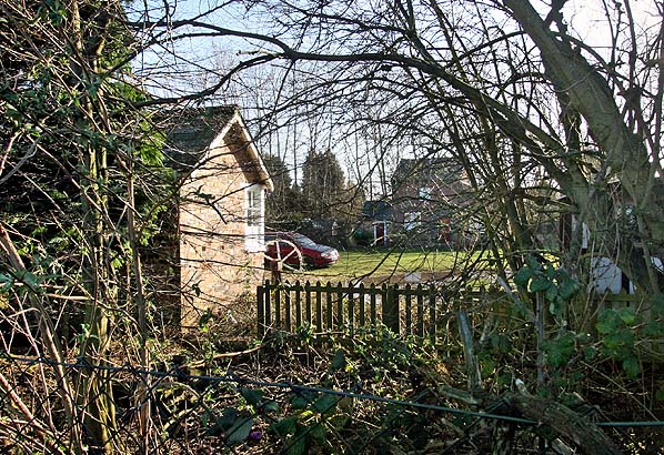 ![]() Looking east across Millbrook goods yard in February 2014. The brick building on the left appears to be an original railway building but isn't shown on OS maps. It resembles a weigh office which at Millbrook was on the other side of the track in the coal yard. Perhaps it was moved. The building in the background is the stable.