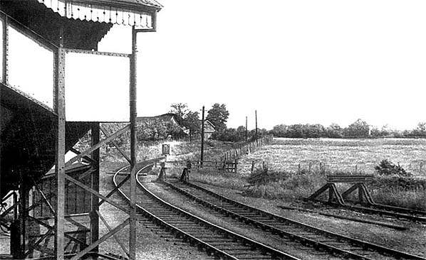 ![]() Looking from the branch platform towards Todenham Road level crossing, keeper's cottage in the centre background, on an unknown date after 1952. The signal which had stood to the right just north of the footbridge over the ditch (behind the lefthand of the two bufferstops) has now gone but it was still there in 1952 according to a signal box diagram of that year. Also present beside the aforementioned footbndge is one of the enamel trespass warning notices which were common on, but not unique to, the Shipston-on-stour branch. The planked foot crossing of the track can also be seen; the public footpath continued over the station footbridge, left, and is the reason why the bridge had flights of steps on both its north and south sides. Provision for the footpath has been incorporated into today's modern step-free station footbridge.