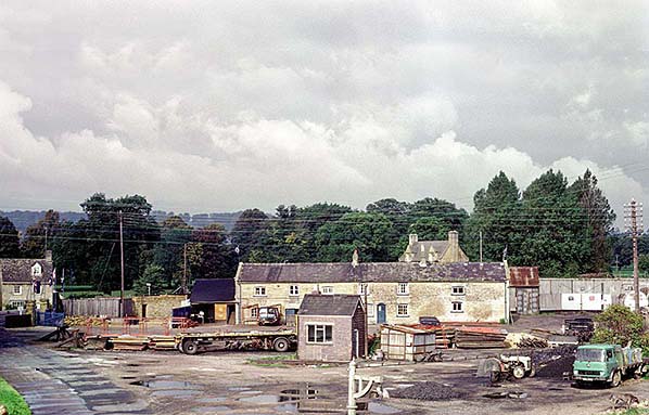 ![]() Photo by Bryan Hicks copyright Anthony Hicks ![]() A view across the former tramway wharf and later, mileage sidings in October 1974. The terraces dead ahead of the camera are original tramway buildings. These contained offices and domestic accommodation mainly for the merchants who made use of the tramway during the time the headquarters of the horse tramway that was the Stratford & Moreton Railway, were located here. The photograph was taken from the mainline station footbridge and facing north-west. The small hut with a window was the weigh office, which was provided with the mileage sidings, which are still in situ. Given the materials stacked on at least one siding, they were presumably out of use by this date. Coal may have still been delivered by rail to the north end dock but the position of the coal pen, remote from it and complete with Ferguson tractor and Bedford TK lorry, suggests not. At the bottom of the photograph is the head of one of the station platform's concrete lamp posts. None of the former tramway buildings have survived and the site is now a Co-op supermarket and car park.