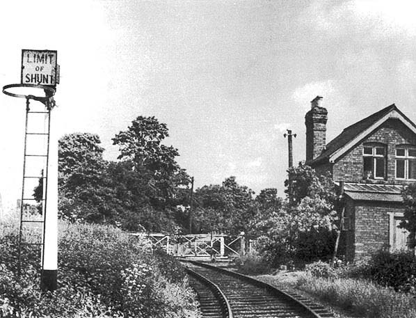 Copyright photo from Colour Rail ![]() This is not the best of images in terms of the subject, but at the time of writing this is the only known photograph showing Todenham Road level crossing when the railway was still in existence. We are looking north with Moreton-in-Marsh station a short distance behind the camera. The crossing gates appear to be quite dilapidated which might suggest that the photograph was taken not long before the Shipston-on-Stour branch closed in 1960. The line south of this crossing was considered part of Moreton's goods sidings, as mentioned elsewhere, hence the presence of the Limit of Shunt warning. The short section south of the Limit of Shunt was therefore not governed by the 'one engine in steam' rule which applied to the rest of the branch. This would explain why and as also mentioned elsewhere these gates being reputedly unlocked, operated and locked by a member of station staff. There was a signal; believed Distant, a hundred or so yards behind the camera and another, presumably a Stop signal, north of the level crossing. This latter signal was located immediately north of the crossing and later, further north at Fosse Lodge (see the maps here). This would suggest interlocking between gates and the aforementioned signals which in turn would suggest the presence of a Ground Frame. However, while deductions based upon normal signalling practice, for the time, are all well and good the facts surrounding Todenham Road level crossing had proved elusive at the time of writing. Certainly there was very little that was 'normal' about the Shipston-on-Stour branch even in passenger days and it operated to the end, more akin to a largely un-signalled light railway.