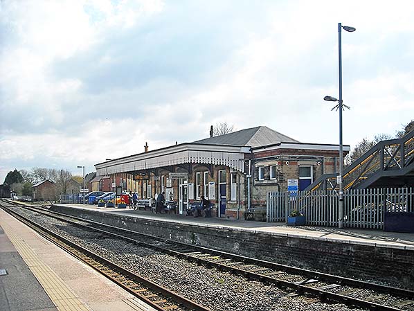 Photo by Edward, reproduced from Signalling Photos Archive under creative commons licence ![]() Looking south from the footbridge in April 2013. Withing a few years the new Down platform building seen here on the left will be demolished and replaced with a bus shelter.