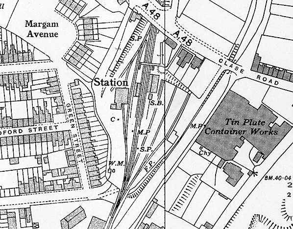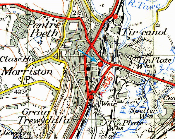 Photo by Vectocraft. Reproduced from Geograph under creative commons licence ![]() The site of Morriston West station seen from Clase Road bridge in November 2010.