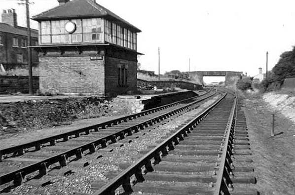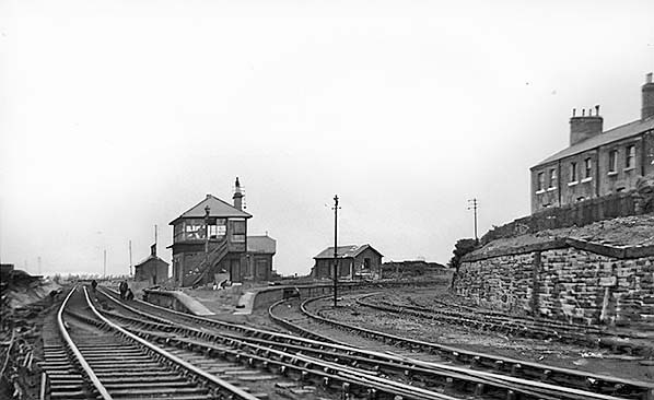Photo from Murton Railway Station History Group ![]() This south facing view is later than its general 'air' might suggest. To the right there is evidence of track lifting of the siding, right, which was intact in 1953 but has been lifted back to the points. Probably circa 1963. We see Murton's second signal box, dating from 1893 when it replaced the first which had stood in the space between this 'box and the station building. The second 'box was a North Eastern Railway Type N2 structure and fitted with a Stevens 53-lever frame. It was abolished in May 1964, after the Elvet branch had been disconnected at Murton in November 1963 having been used at this end, east of Hetton, for wagon storage (the branch also had a connection with the Leamside line).