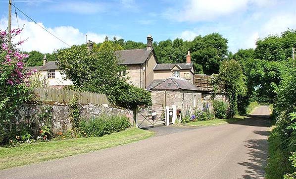 Looking north in July 2005 towards the forecourt elevation of Norham station and the abutments of the bridge that formerly carried the NER Kelso Branch over the lane to Norham village.