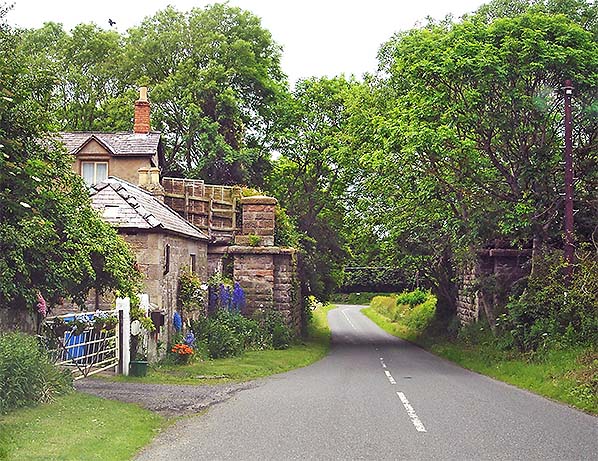 Looking north in June 2011 towards Norham station and the abutments of the bridge that formerly carried the NER Kelso Branch over Norham Station Road. The bridge was dismantled on 18 April 1971.