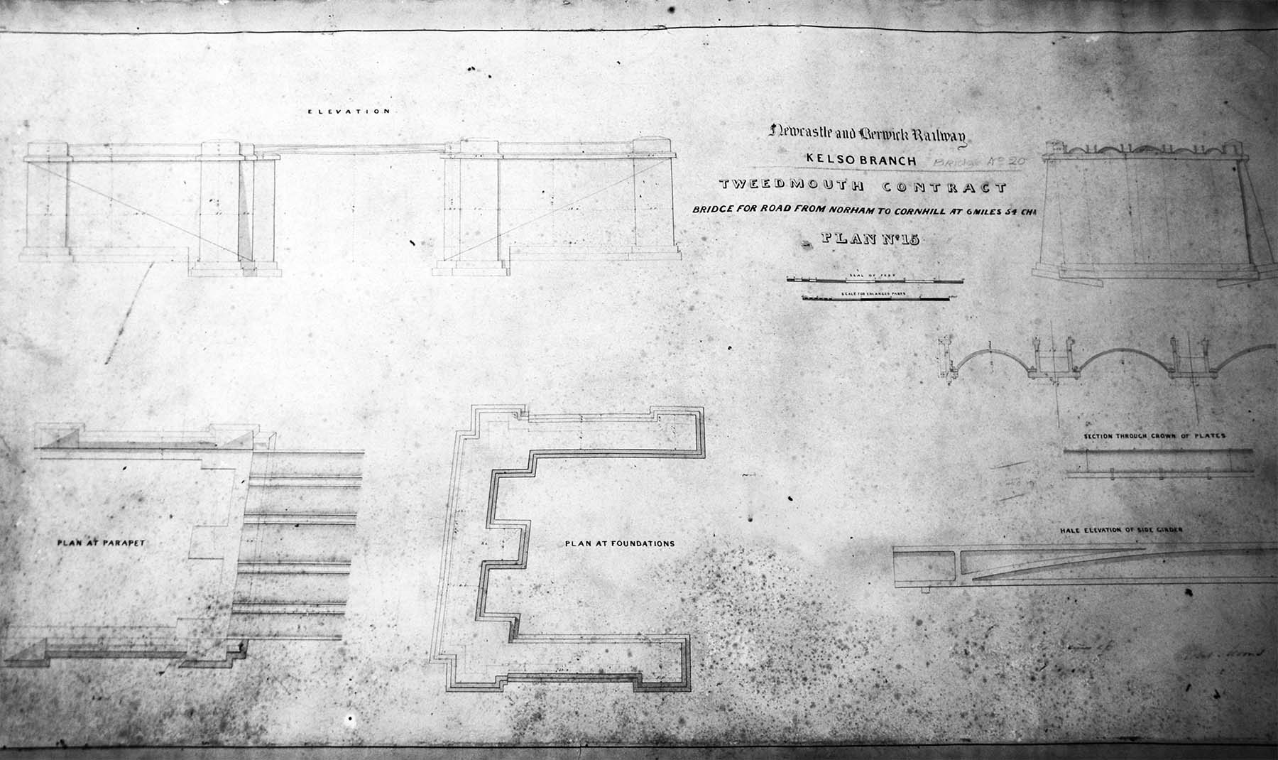 Architect’s drawings of the railway bridge over Norham Station Road.