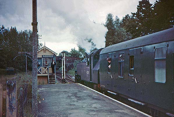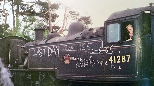 Ivatt 2MT 41287 is seen at Rudgwick station on the last day of service 12 June 1965. The official closure date is listed as 14 June 1965 which is a Monday. Closure dates are alwas the first day the service didn't run. There was no Sunday service so last train 12 June station closed from 14 June. Closure are always listed in this way.
