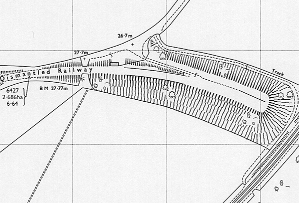 ![]() 1972 1:2,500 OS map. Track has been lifted and station buildings have been demolished except the signal box..