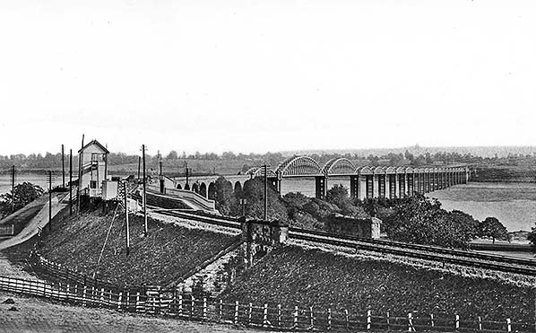 ![]() Looking south east towards Severn Bridge station and the Severn bridge from an elevated position c1905.