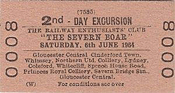 Photo from John Mann collection ![]() Looking south east from Severn Bridge station towards the bridge in the1950s. Note the LMS Hawkseye running in board stating Severn Bridge For Blakeney. The village of Blakeney which the station served was two miles away along poor roads and it's unlikely that station ever had much traffic from the village.