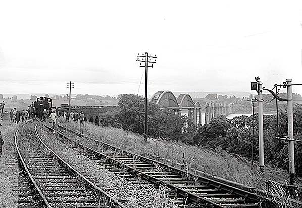 Track has been lifted across across the surviving part of the bridge by May 1964. The breach can be seen in the distance.