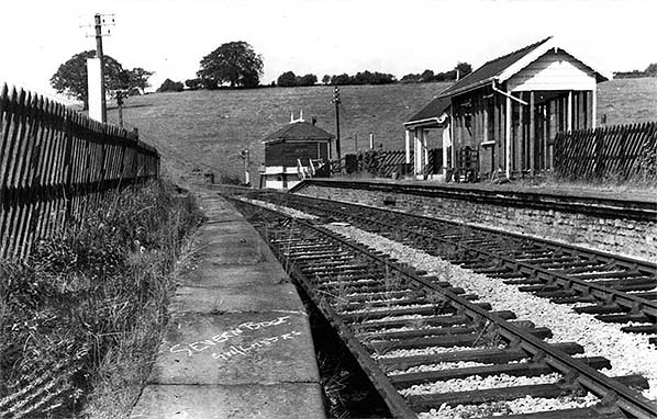 Looking south west at the Severn Bridge station c1962 probably a few months after closure. At this time it was expected that the bridge would be repaired and the line would reopen. Prolific railway photographer John Smith (Lens of Sutton) always chalks the name of a station on the platform or on a board.