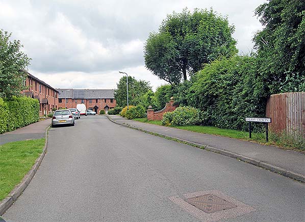Photo by Graham Ross, reproduced fom Geograph under creative commons licence ![]() The site of Shipston on Stour station looking north in August 2016. Station Crescent occupies the station site. The houses on the left are on the site of the goods yard and goods shed.