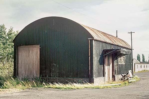 Photo by Bryan Hicks copyright Anthony Hicks ![]() The rail and office side of the goods shed on the 22nd of September 1974. Apparently on the occasion of a family outing. The camera is facing north-west. As the sign implies, the shed was in commercial use although apart from the office it looks for all the world to be derelict.