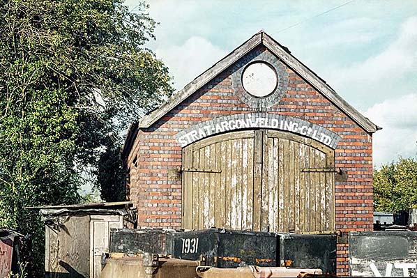 Photo by Bryan Hicks copyright Anthony Hicks ![]() Shipston-on-Stour engine shed seen in September 1974. This is facing north and therefore shows the south end of the shed. As with the goods shed, the engine shed was or had been in commercial use. The name has been rather squeezed onto the arch and there should be a space between ‘Argon’ and ‘Welding’. This company was dissolved in June 2002. Apart from the weigh office which survives to this day on what is now private property, the engine shed was the final former railway building to survive at Shipston-on-Stour, being demolished shortly before or during 2001.